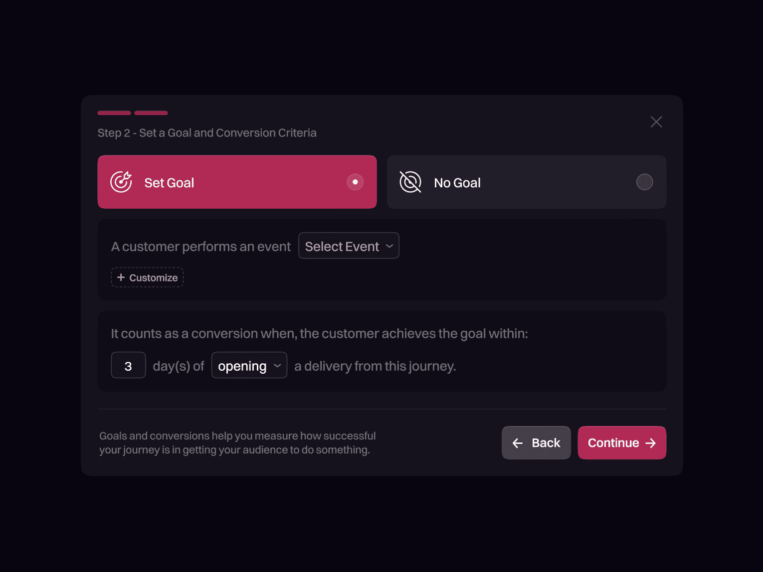 The screens above highlight key improvements across user journey creation, trigger setup, goal configuration, and supporting workflows.