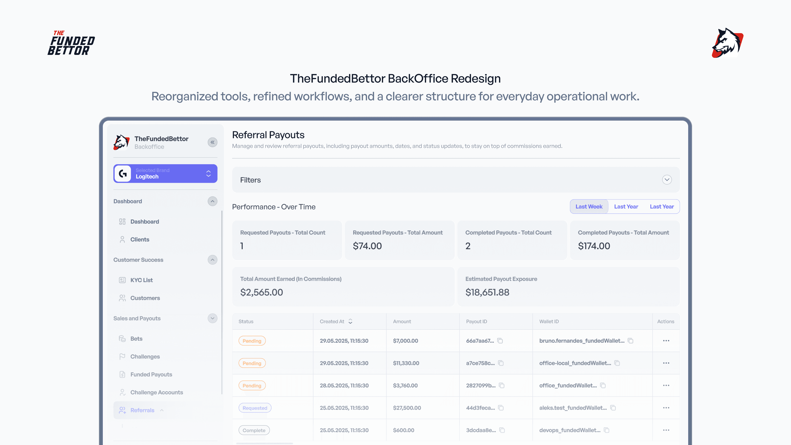 Dense tables, inconsistent layouts, and unclear hierarchy made everyday actions slower and more error-prone, especially when reviewing performance, managing payouts, or monitoring risk.
